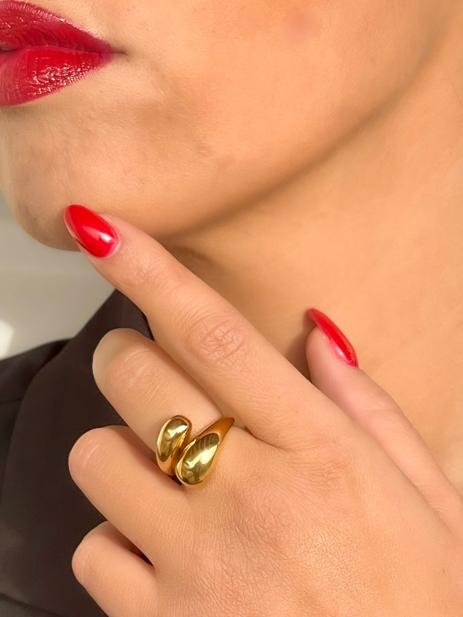 La bague Gouttes est un bijou créé à l'image de 2 gouttes larges. Son design unique et élégant s'inspire du monde en faisant un accessoire exclusif.