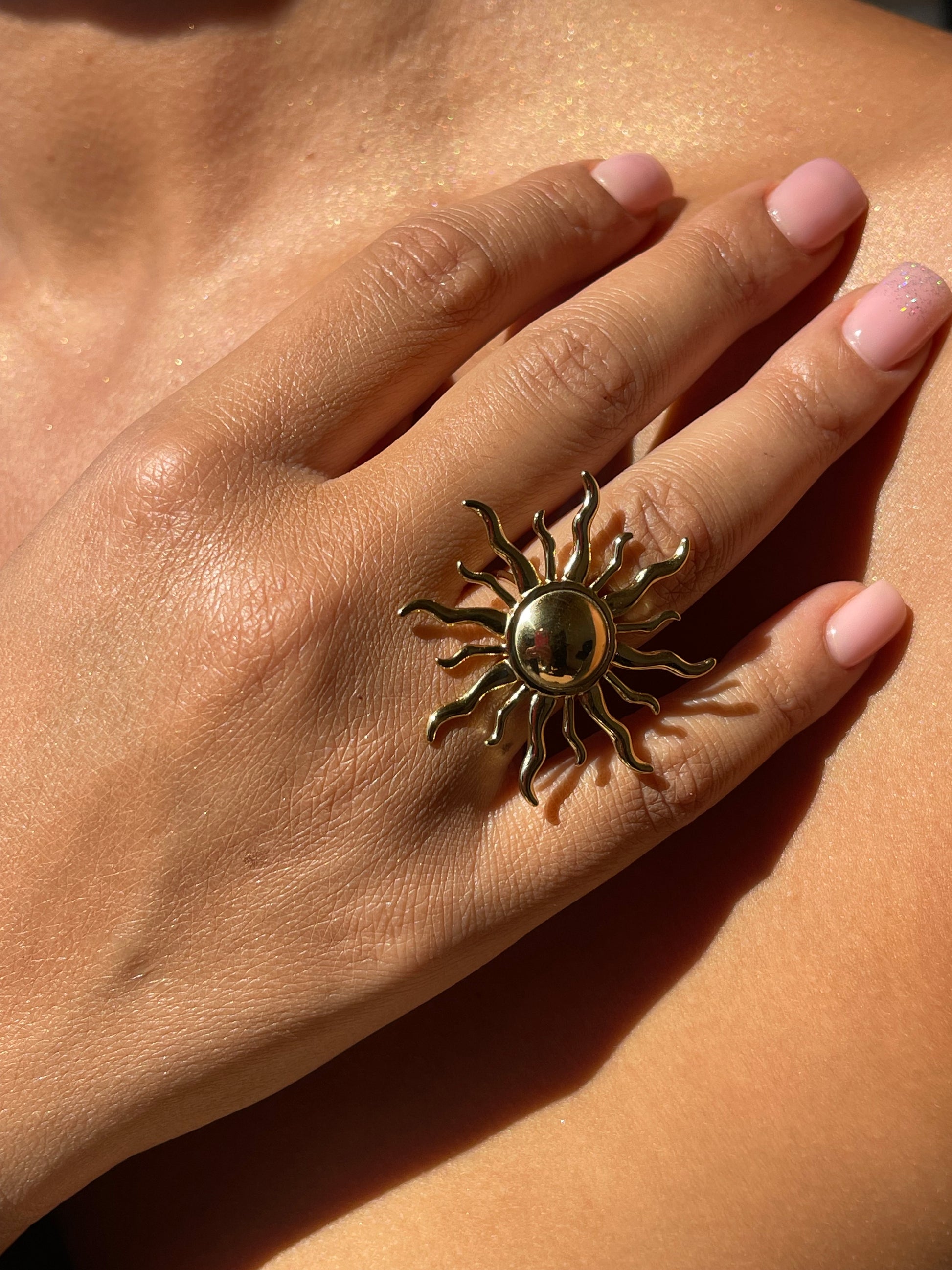 Déclarez votre style avec la bague Sinoe, ornée d'un soleil rayonnant. Parfait pour une touche de fantaisie et de bonne humeur dans votre quotidien !