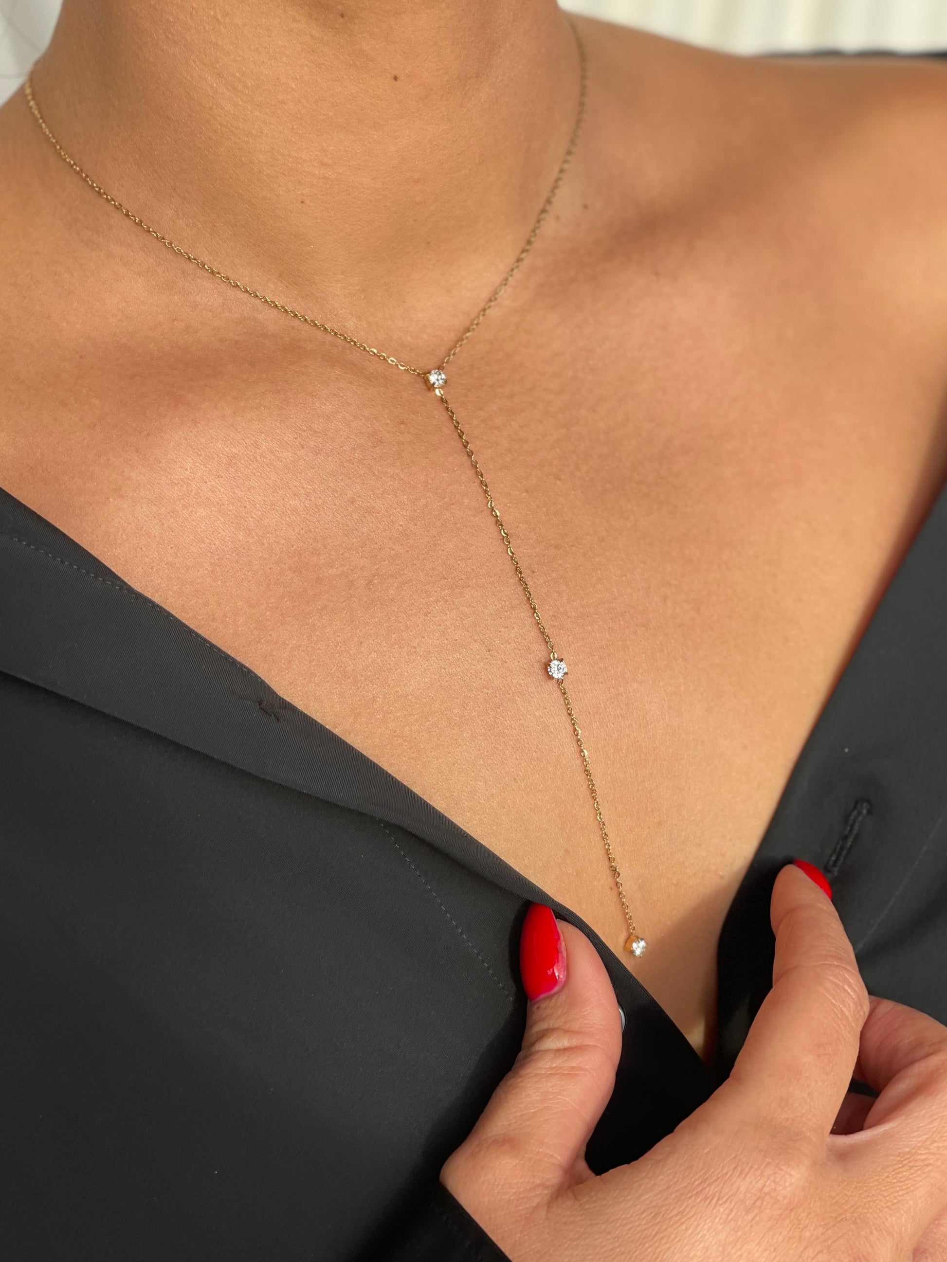 Découvrez le Collier Hilona, une pièce fine et élégante avec ses 3 zircons tombants. Fabriqué avec précision et soin, ce collier ajoutera une touche d'élégance à votre tenue.